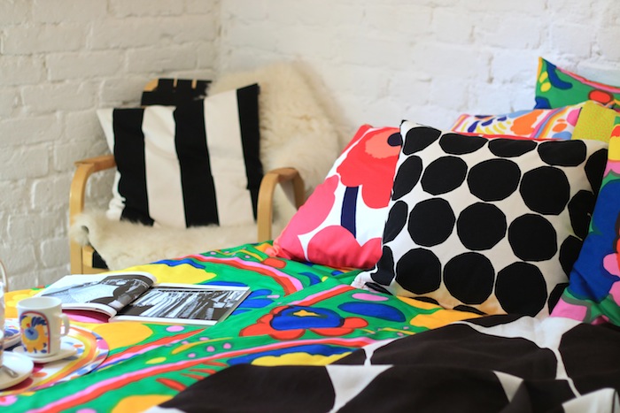 Pohjoismaalainen ajattomuus yhdistettynä rohkeisiin väreihin ja näyttäviin kuoseihin tuntuu itsestäni aina yhtä kotoisalta. Raikasta ja lämminhenkistä samaan aikaan. Joka kerta Marimekolla käydessä tulee pakottava tarve kaivaa ompelukone esille ja surrauttaa muutama tyynyliina.