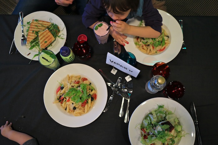 Välillä kävimme syömässä lounaan Sea Lifen ohessa olevassa kahvila Carccilassa. Ennakkoon sovelluksessa valitsemani ruuat odottivat valmiina pöydässä sopimanamme aikana. Suosittelen pyytämään Sea Lifeen saavuttaessa kassalta, että ruokailun aikana jälkiruuat tuodaan pöytään vasta pääruokien jälkeen. Pastasta hävisi kummasti maku lasten suussa, kun vieressä odottelivat jälkkärivohvelit. Ymmärtänette mitä tarkoitan haha! Ja noin muutenkin, ruoka on tietty kiva saada juuri laitettuna eteensä.